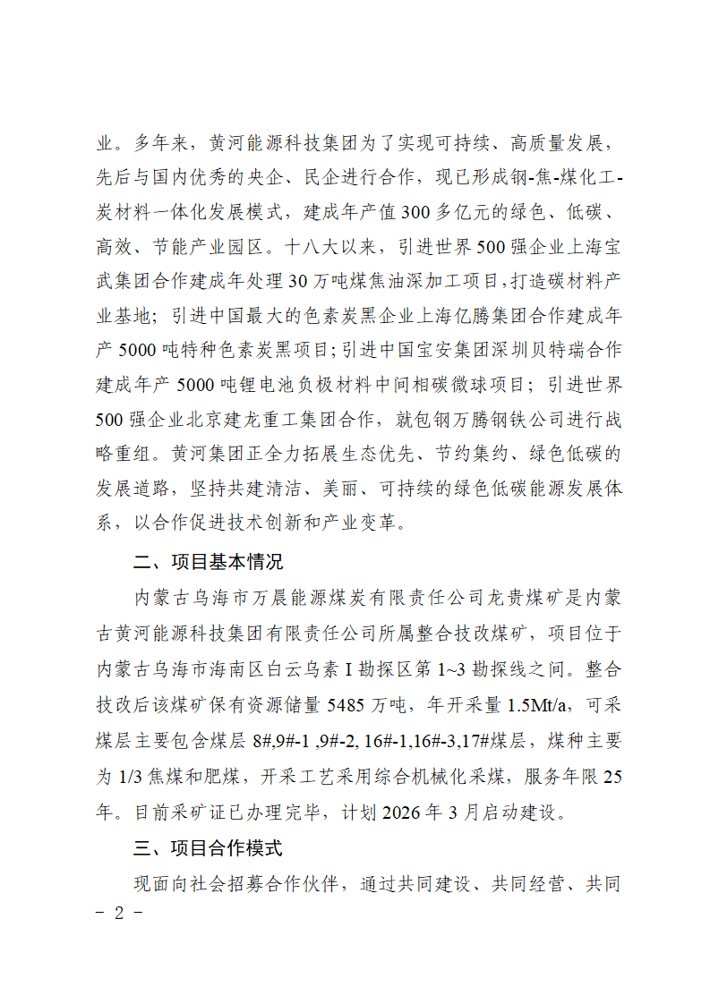 內(nèi)蒙古黃河能源科技集團有限責任公司關(guān)于招募井工煤礦合作伙伴的公告